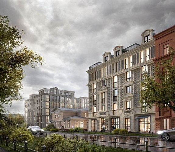 Облик комплекса создан мастерской Liphart Architects и унаследовал благородство петербургской традиции зодчества. Акцент на деталях, продуманный декор, панорамные окна с утонченными балконными решетками и мансардный этаж с террасами делают его неповторимым.